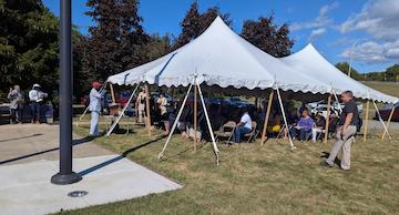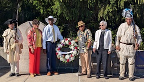 Don Mays, founder of AFRI film foundation was the Master of Ceremonies and the key note speaker was Commander Keith M Carter. Two musical selections were performed by Brenda Delasanta. Approximately 90 people attended the ceremony, which took place at Patriots Park, Portsmouth, RI.